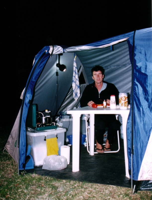 Zeltalltag: Ingo beim Kochen.