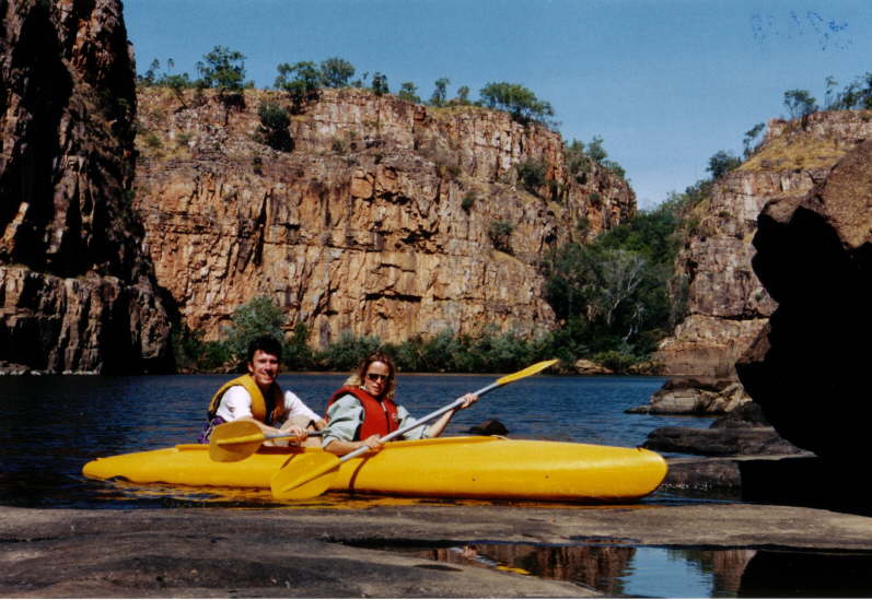 Das Paddeln durch den Katherine Gorge ist ein riesen Spaß. Die Aussicht lohn jeden Ruderschlag.